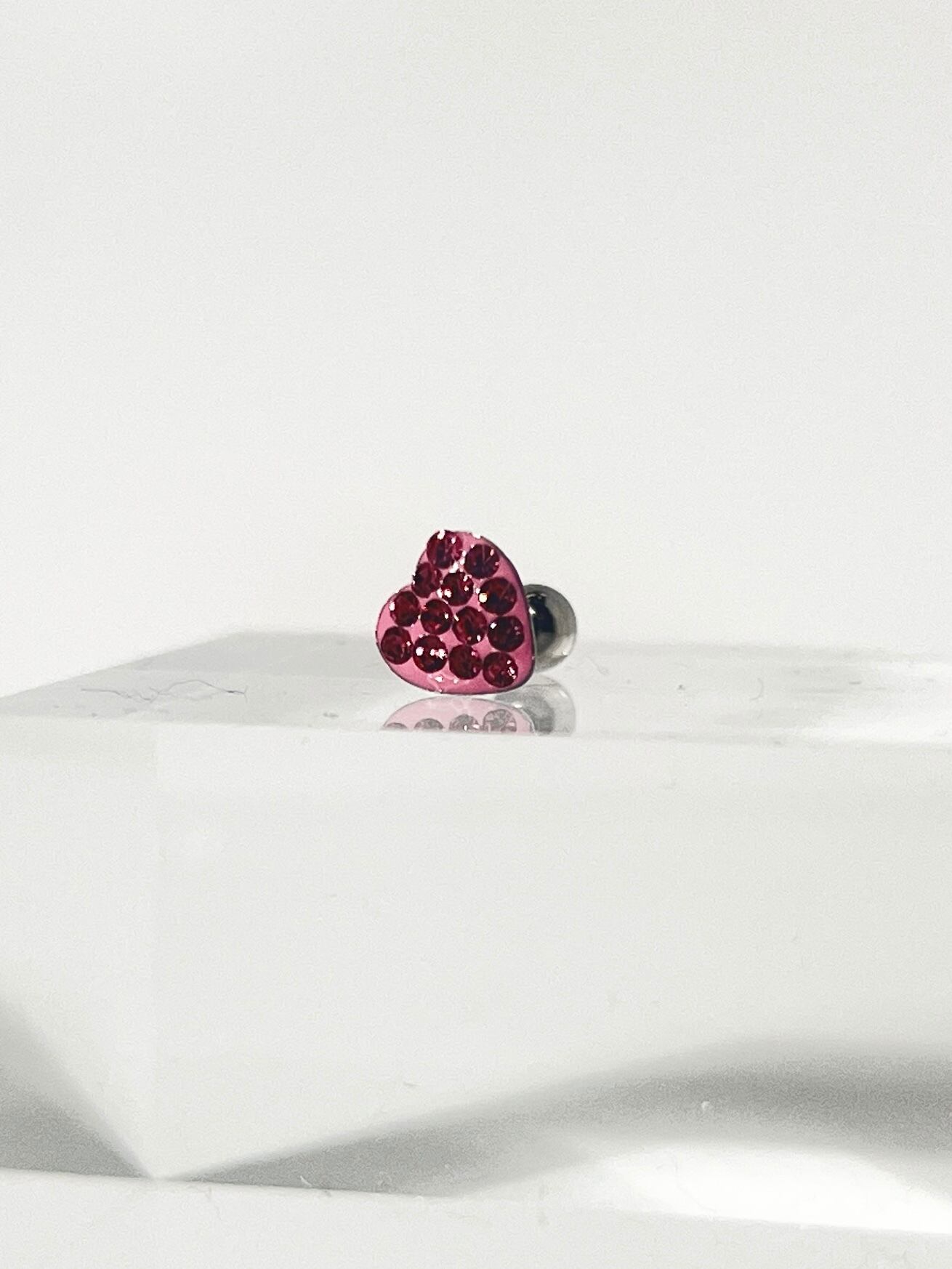 鮮やかなピンクカラーのパヴェカラーハートをあしらった、16G ストレートバーベルボディピアスが新たに登場です!